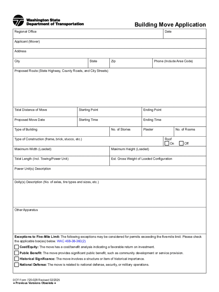 The building move application form is typically structured to capture comprehensive information about the proposed move. It often includes several key sections designed to gather important details.