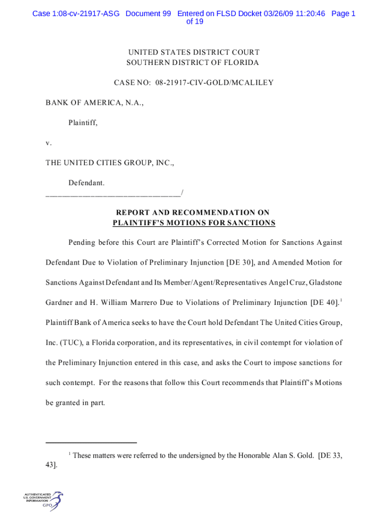 Get the free Report and Recommendation on Plaintiff's Motions for Sanctions