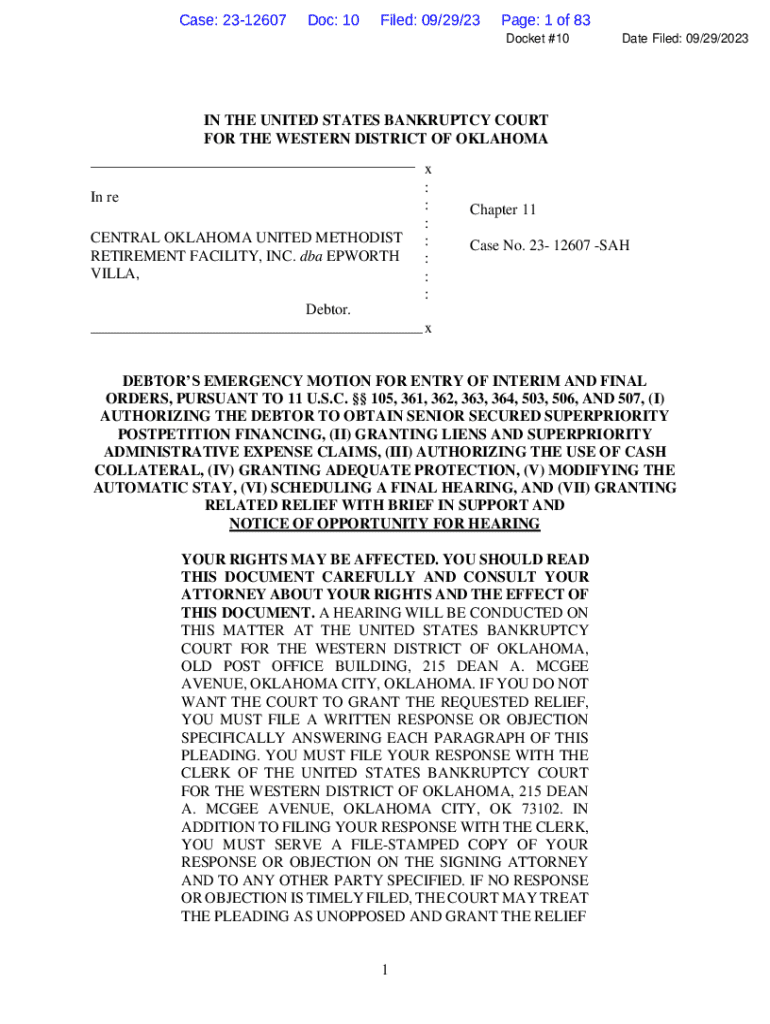 Get the free Emergency Motion for Entry of Interim and Final Orders