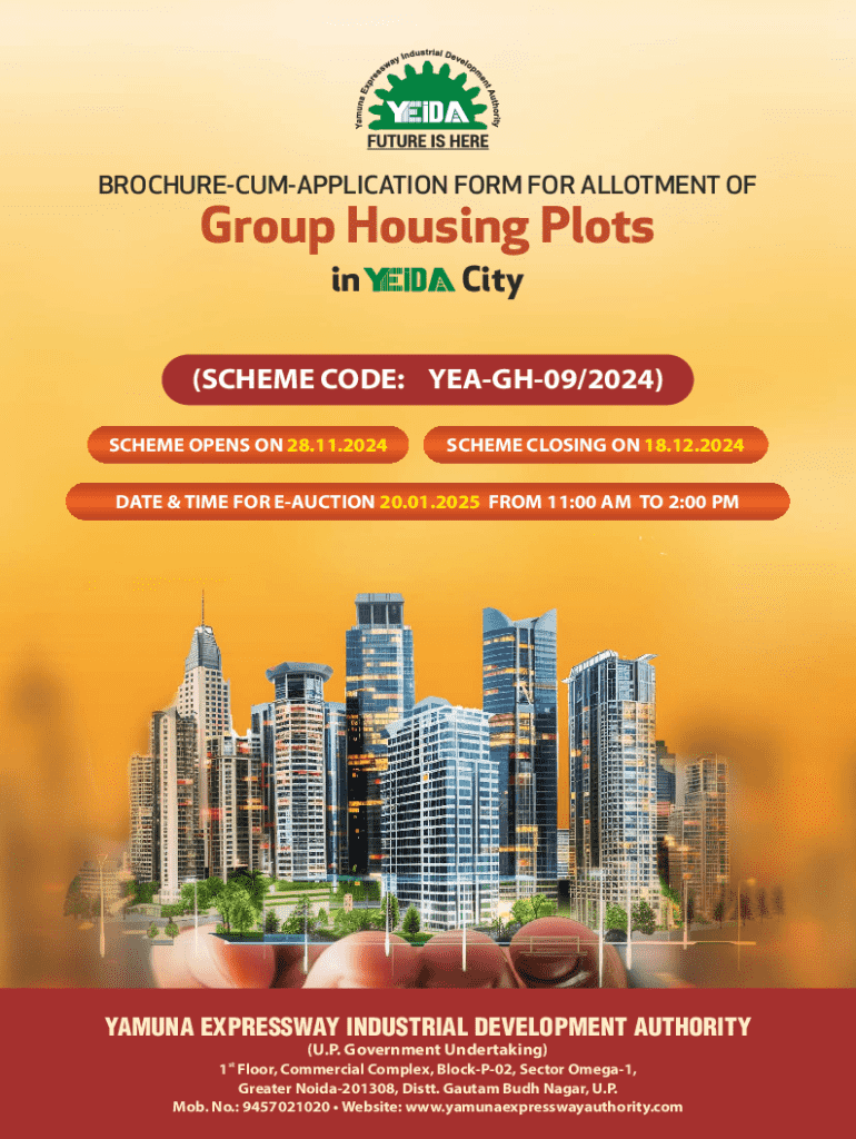 Get the free Brochure-cum-application Form for Allotment of Group Housing Plots in City