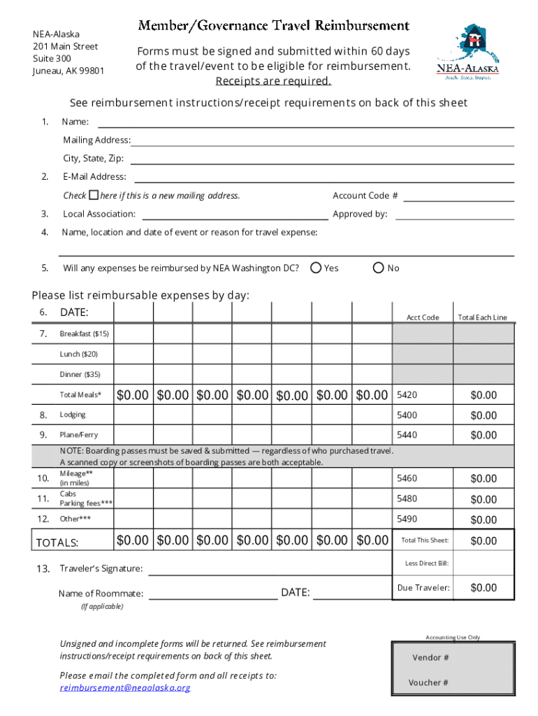 Get, Create, Make and Sign nea-alaska membergovernance reimbursement form