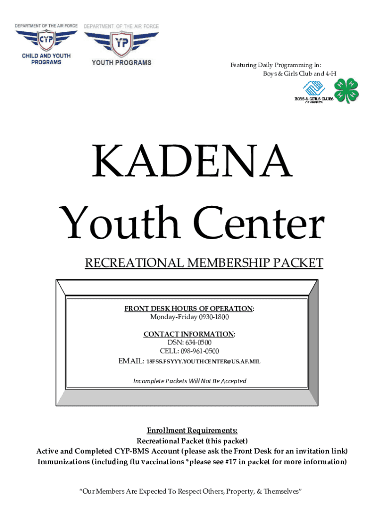 The Kadena Youth Center Recreational Form is an essential tool for families looking to enroll their children in these activities. Ensuring that each child has a place in these programs not only broadens their horizons but also strengthens community bonds. By participating in youth center activities, children gain confidence, make friends, and explore new interests while parents can connect with other families.