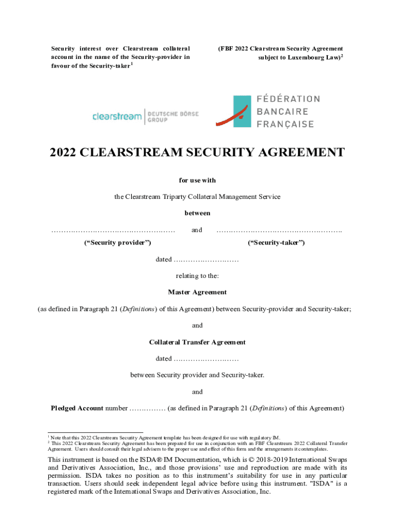 Get the free Fbf 2022 Clearstream Security Agreement