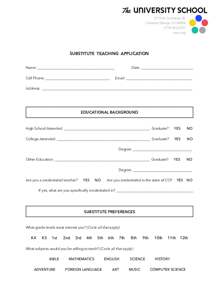 Get the free Substitute Teaching Application