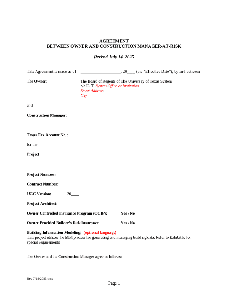 Template Agreement Between Owner and Construction Manager-at-risk instructions