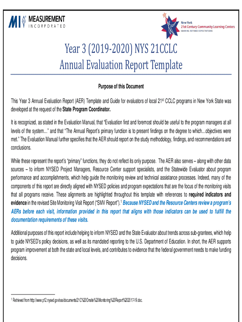 Get the free Year 3 (2019-2020) Nys 21cclc Annual Evaluation Report Template