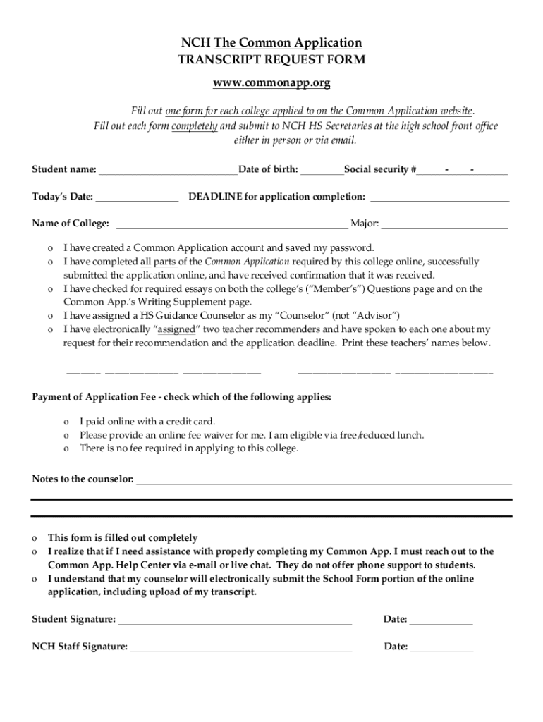 Get the free Nch the Common Application