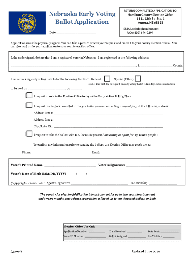 Get the free Nebraska Early Voting Ballot Application