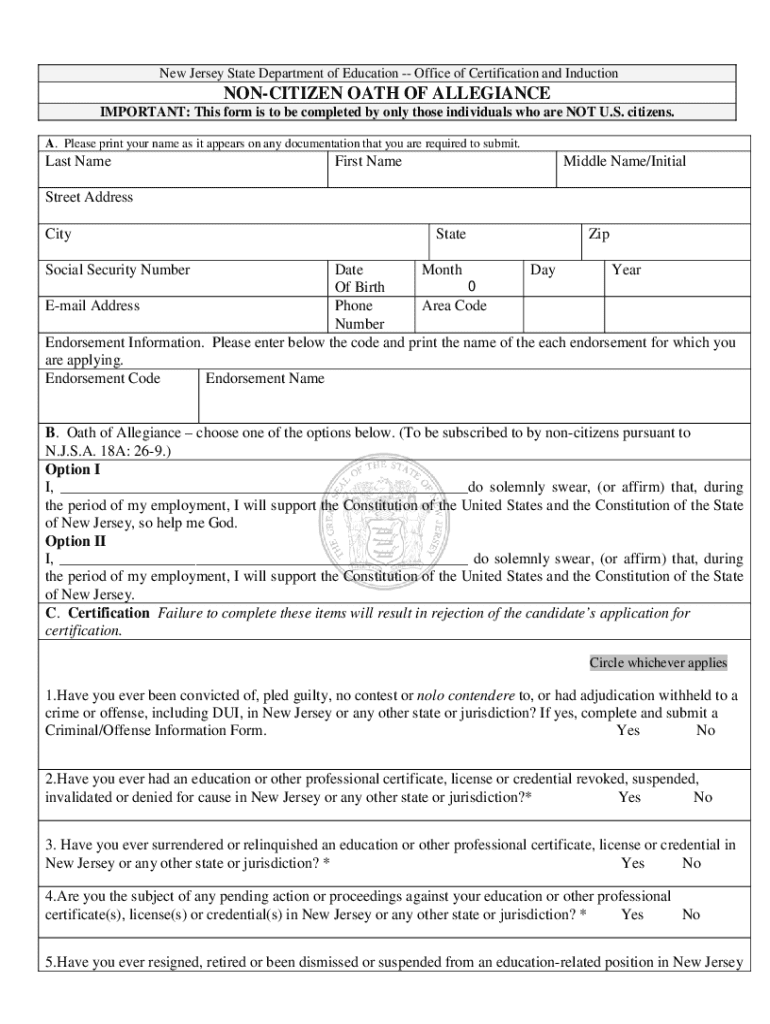 Non-Citizen Oath of Allegiance Form - pdfFiller