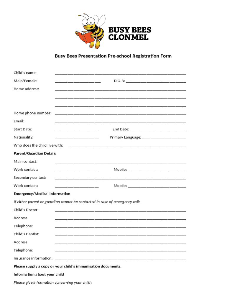 Busy Bees Presentation Pre-School Form: A Comprehensive Guide