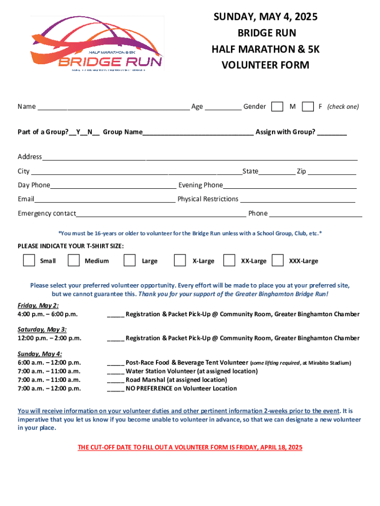 Get the free Bridge Run Volunteer Form