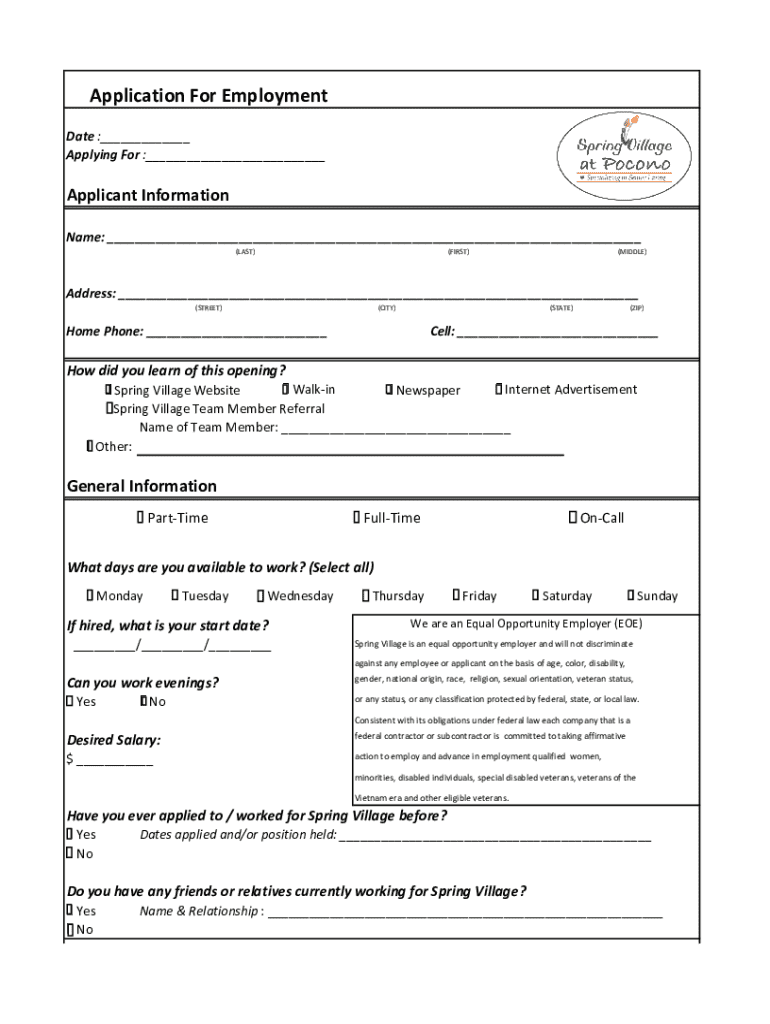 Comprehensive Guide to Application for Employment Form