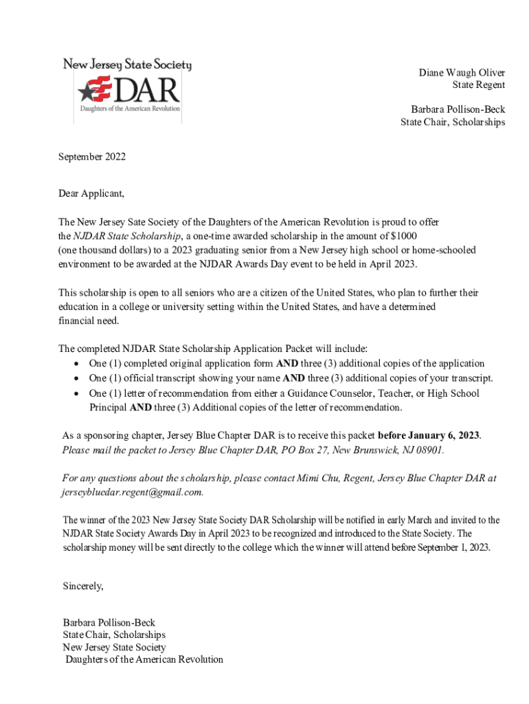 Get the free New Jersey State Society Dar Scholarship Application