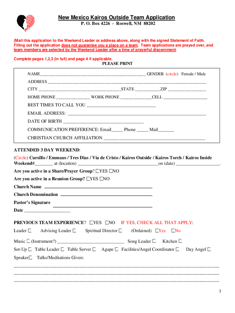 Beginning your journey with the New Mexico Kairos Outside Form is straightforward and user-friendly. The form is structured into several key sections that collectively create a comprehensive picture of the applicant. Each segment is strategically designed to capture essential details that empower the leaders of the Kairos ministry to serve participants effectively.