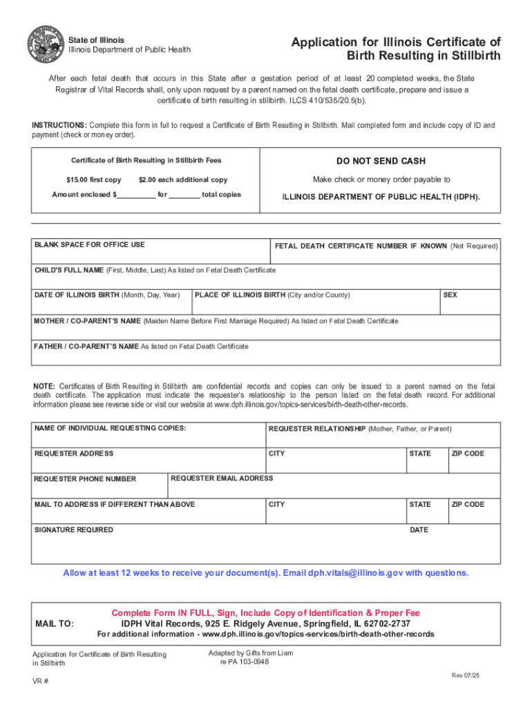 Get the free Application for Illinois Certificate of Birth Resulting in Stillbirth