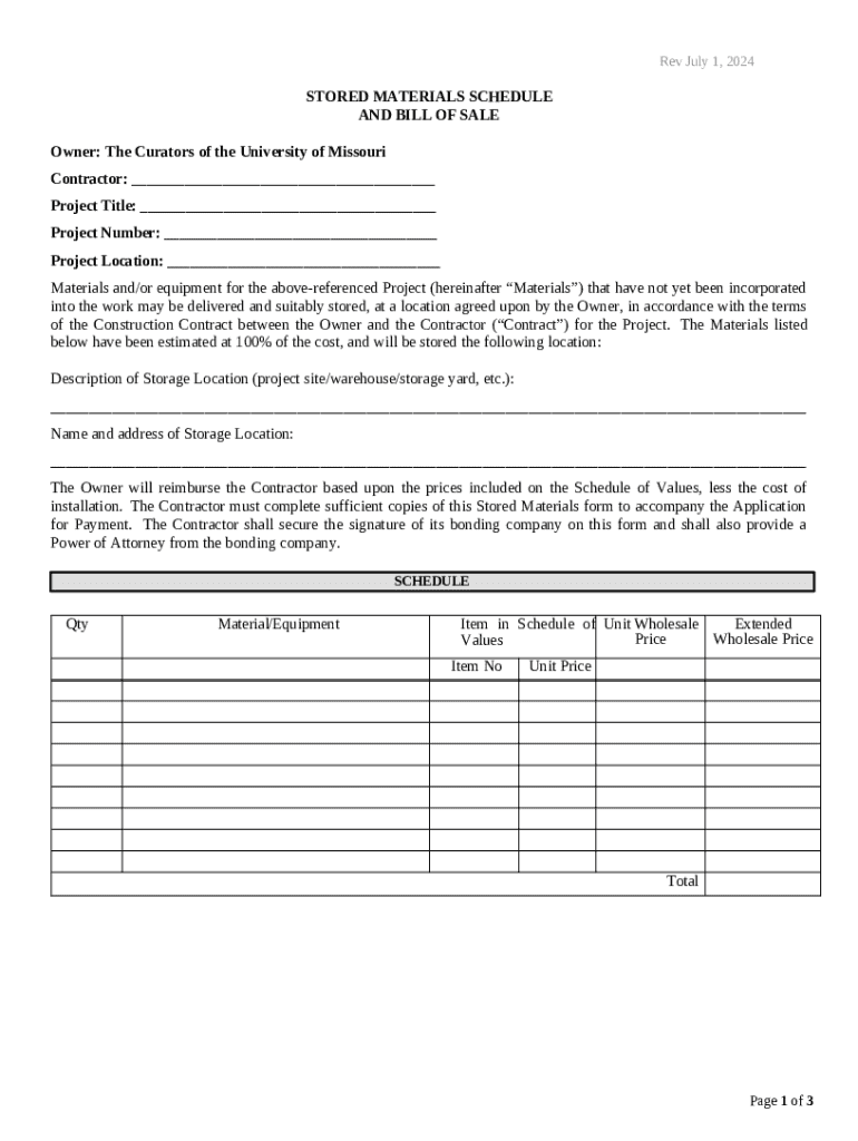 Stored materials schedule and form: A comprehensive guide