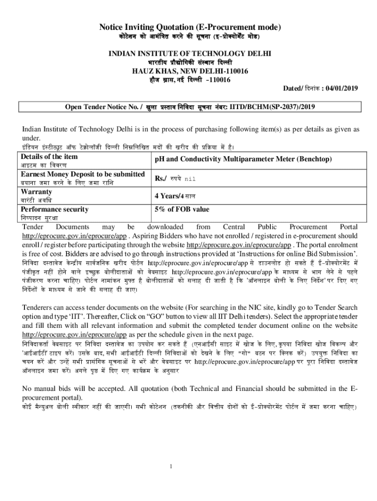 Get the free Notice Inviting Quotation (e-procurement Mode)