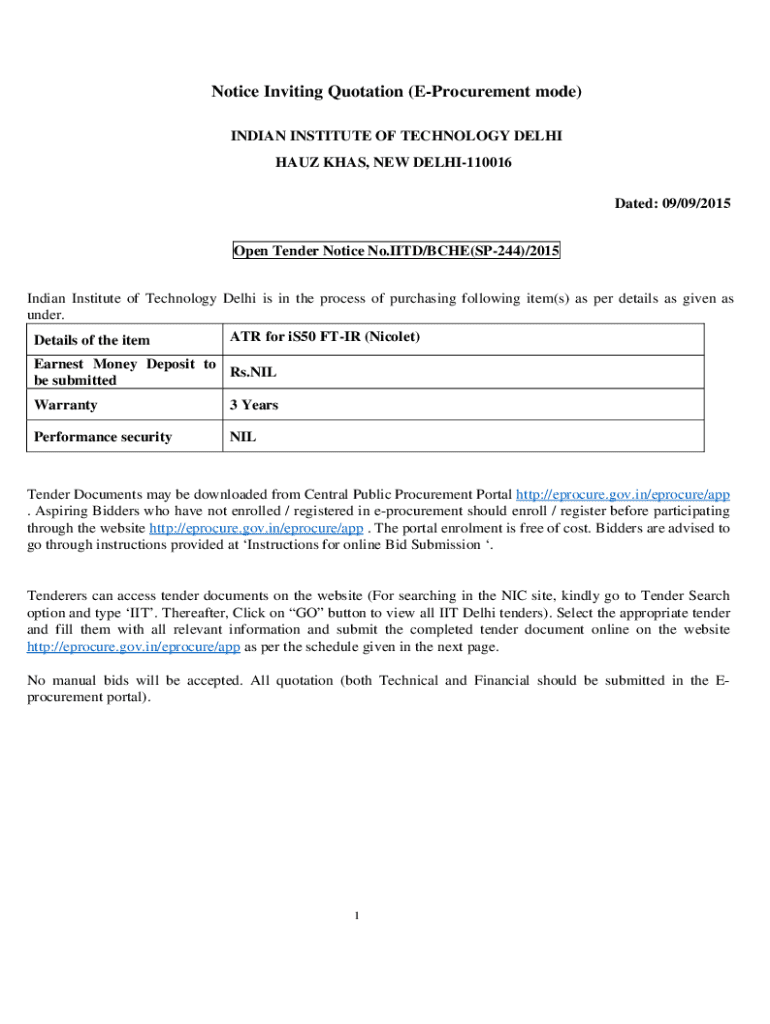 Get the free Notice Inviting Quotation (e-procurement Mode)