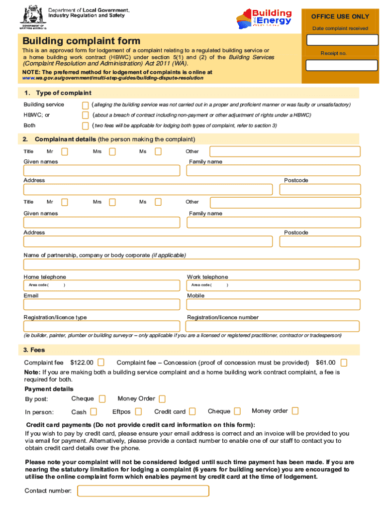 How to fill out building complaint form