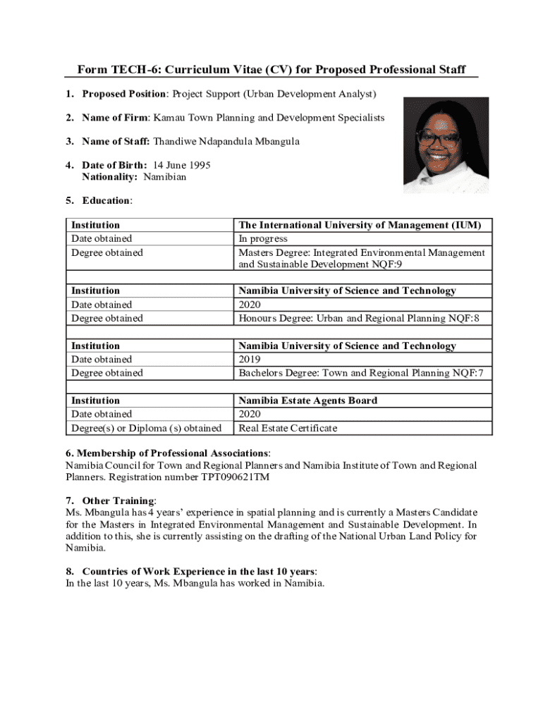 This document serves as a comprehensive Curriculum Vitae for two proposed professional staff members, detailing their educational background, work experience, skills, and professional qualifications