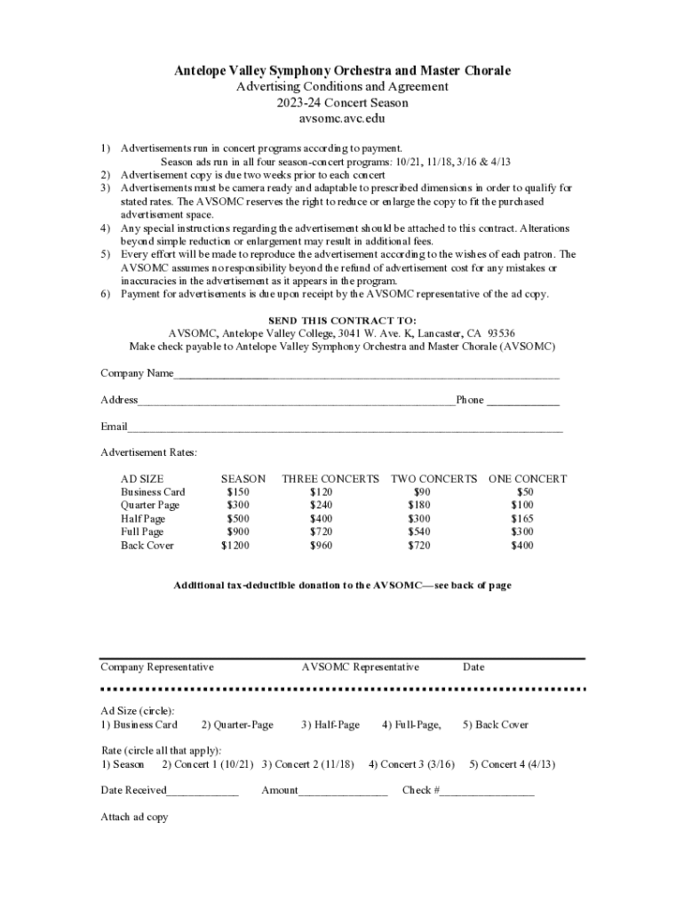 Get the free Antelope Valley Symphony Orchestra and Master Chorale Advertising Conditions and Agr...