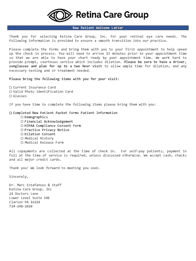 How to fill out new patient welcome letter?