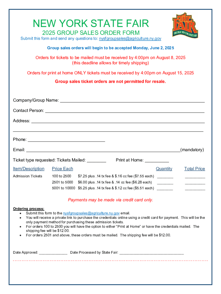 Get the free New York State Fair 2025 Group Sales Order Form