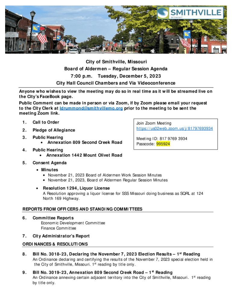 Get the free Agenda for Board of Aldermen