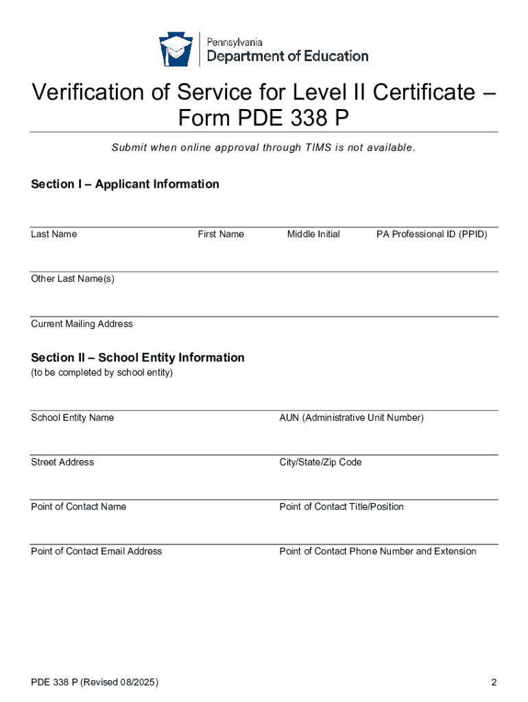 Get the free Verification of Service for Level Ii Certificate – Form Pde 338 P