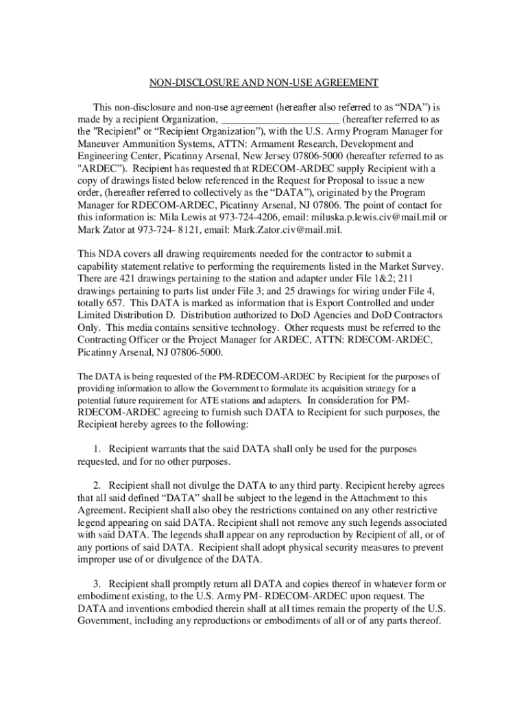 Get the free Non-disclosure and Non-use Agreement