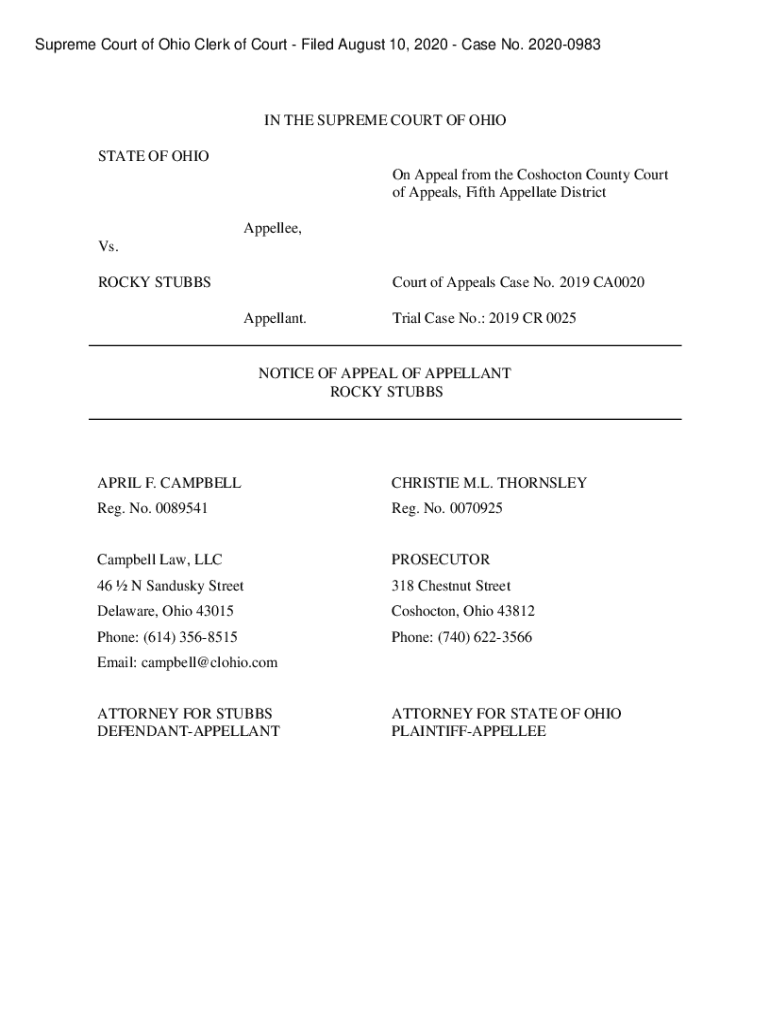 Get the free Notice of Appeal of Appellant Rocky Stubbs