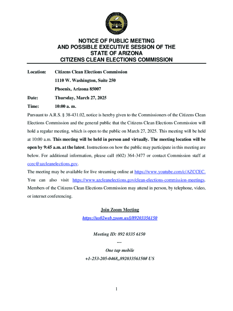 Get the free Notice of Public Meeting and Possible Executive Session of the State of Arizona