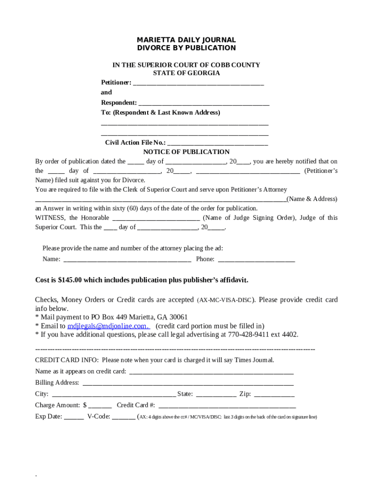 How to fill Marietta Daily Journal Divorce by Publication word template