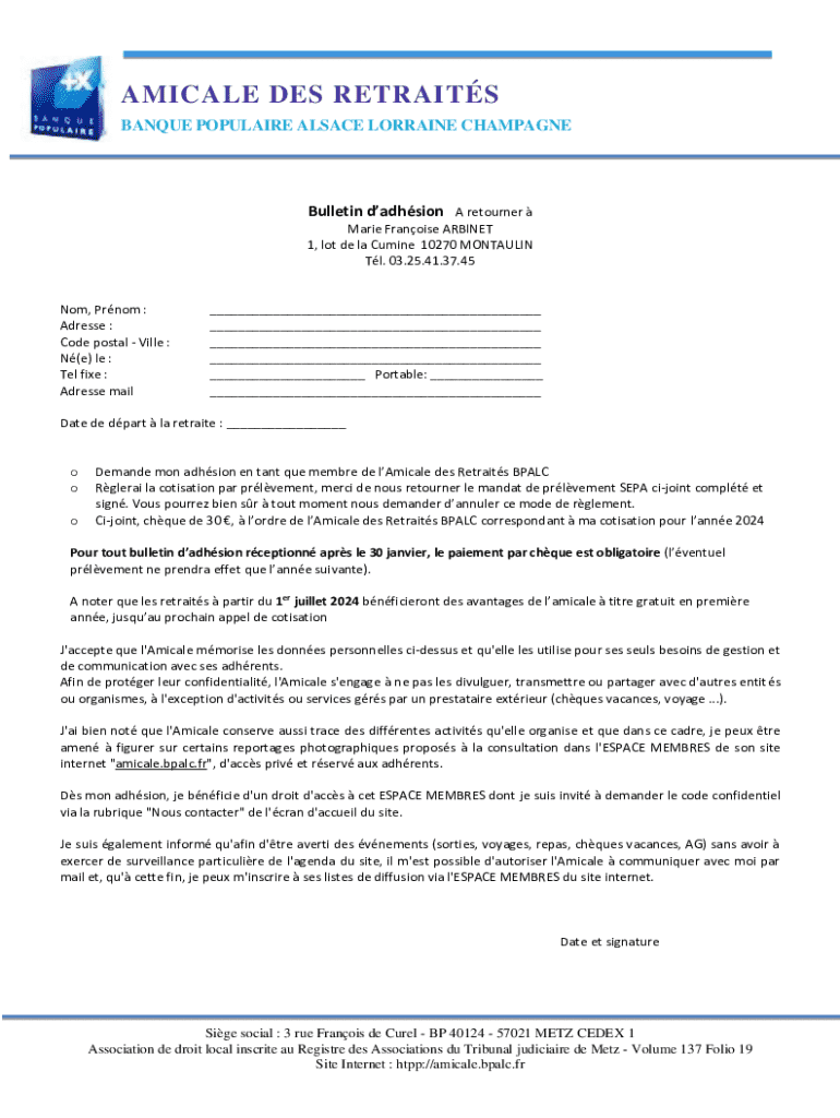 Obtenir le gratuit Bulletin D’adhésion