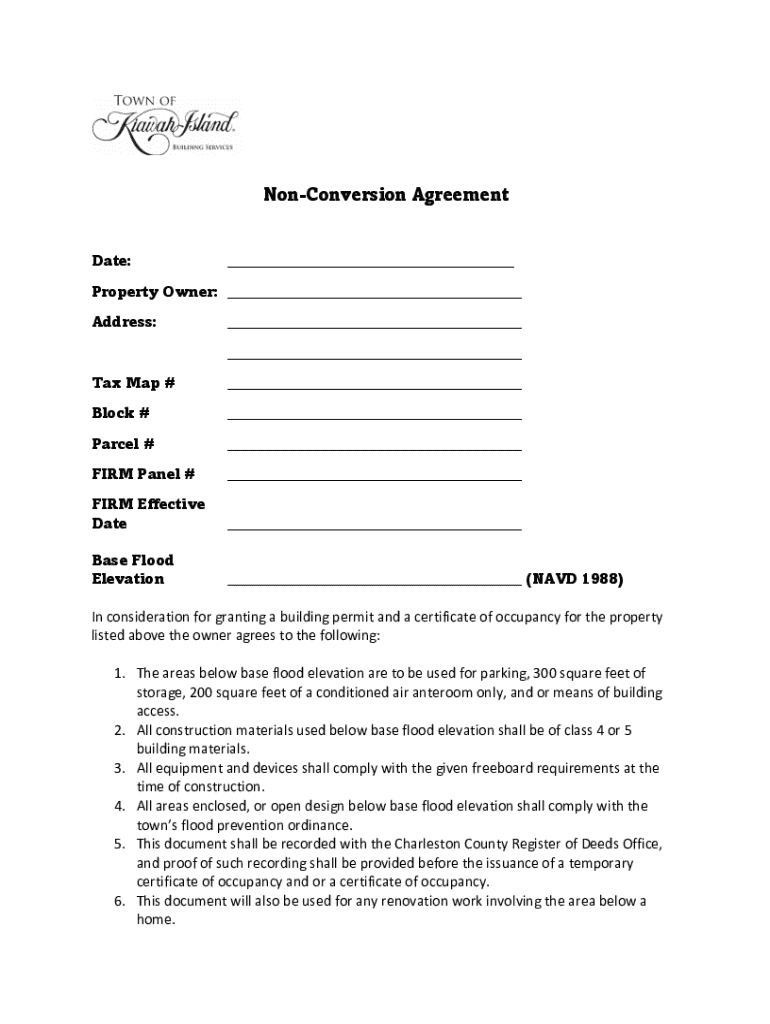 Before creating a Non-Conversion Agreement Form, it's essential to gather all necessary information. This includes the names, addresses, and contact details of all parties involved. Moreover, specific legal descriptions of the property involved are crucial, as this ensures clarity about what is covered under the agreement. Accurate information can prevent disputes and serve as a valid reference point for future obligations.