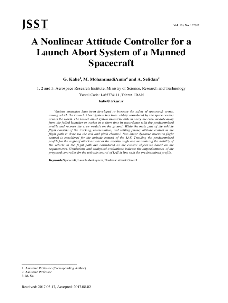 Get the free A Nonlinear Attitude Controller for a Launch Abort System ...
