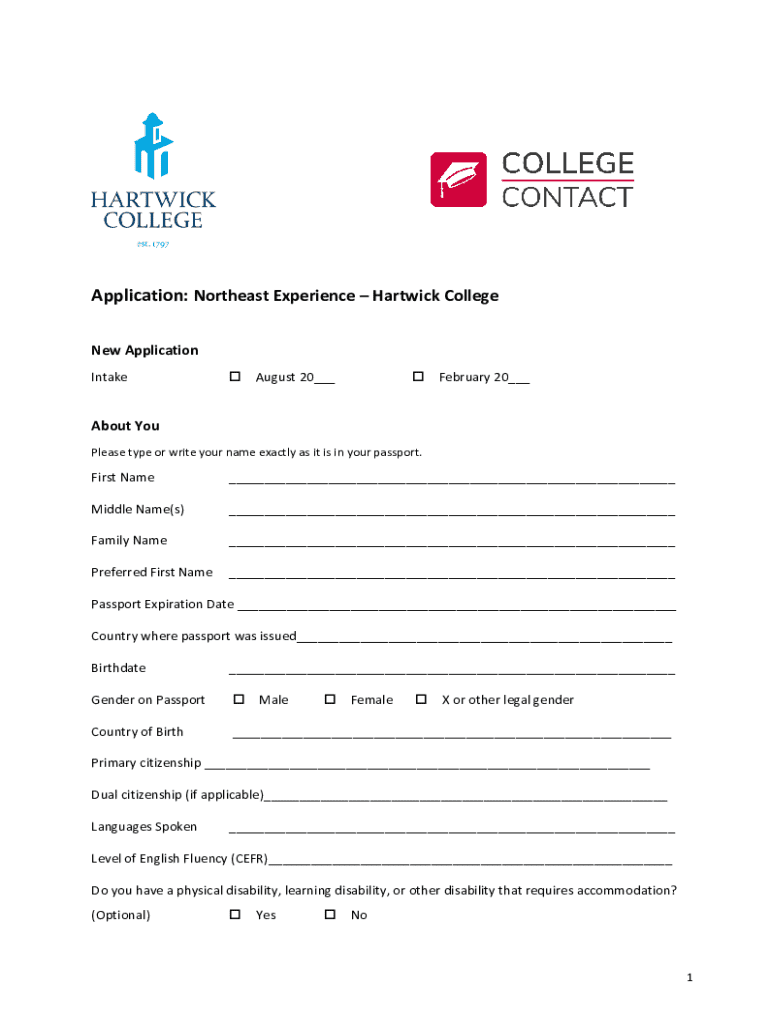 Get the free Northeast Experience – Hartwick College Application