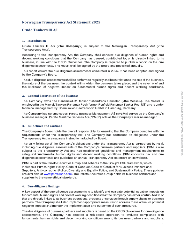 Get the free Norwegian Transparency Act Statement 2025