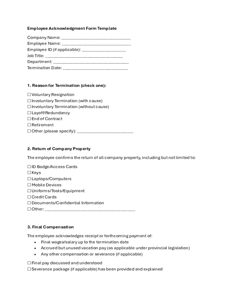 Comprehensive Guide to Employee Acknowledgment Form Template