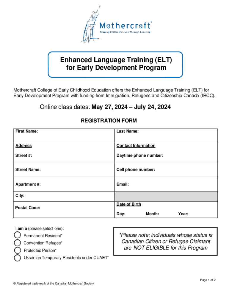 Get the free Enhanced Language Training Registration Form