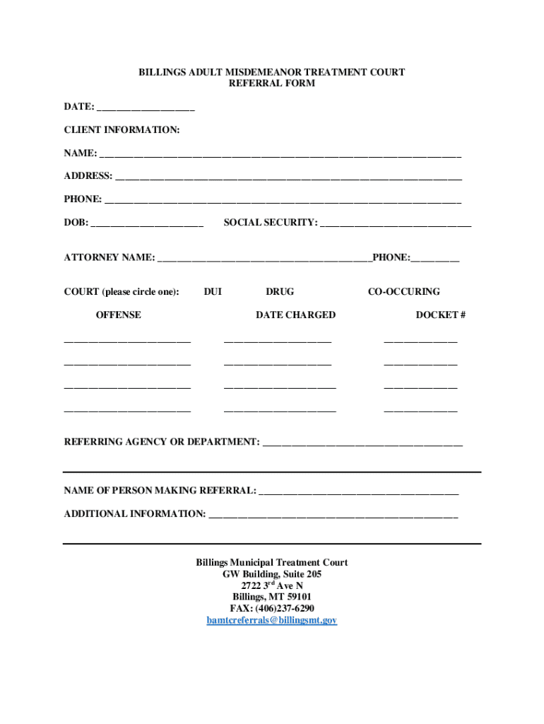 Get the free Billings Adult Misdemeanor Treatment Court Referral Form