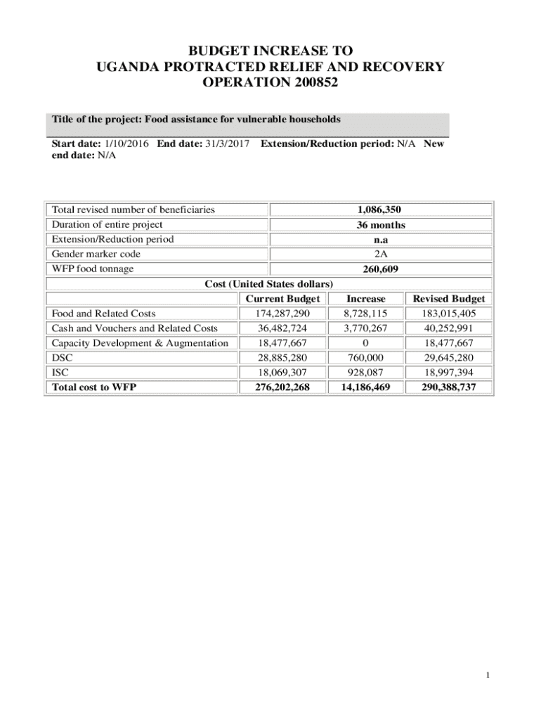 Get the free Budget Increase to Uganda Protracted Relief and Recovery Operation 200852