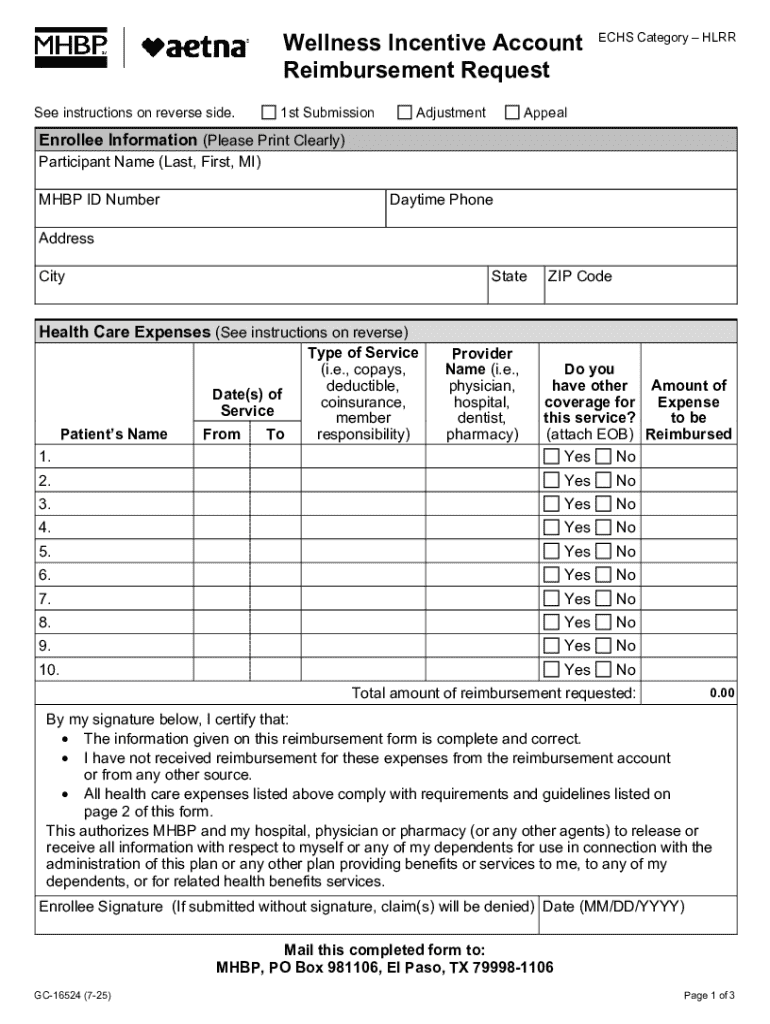 Get the free Wellness Incentive Account Echs Category – Hlrr Reimbursement Request