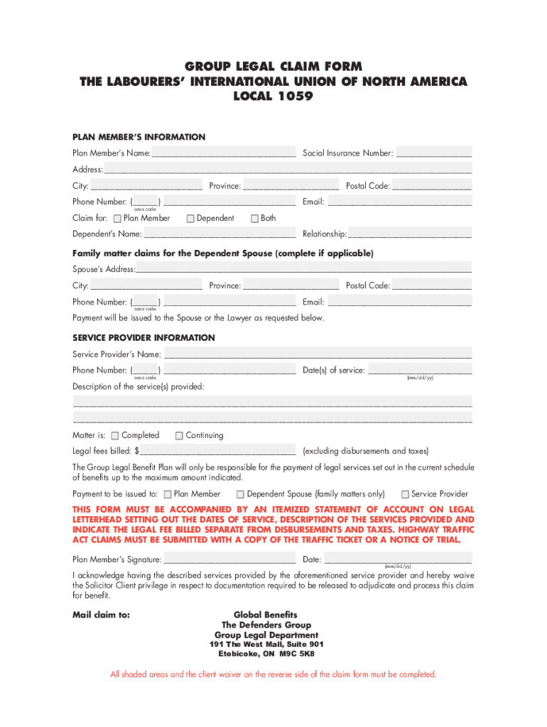 Filling out the global-liuna_1059 form requires careful attention to detail to ensure all pertinent information is correctly captured. The form consists of several key sections, each requiring specific inputs: