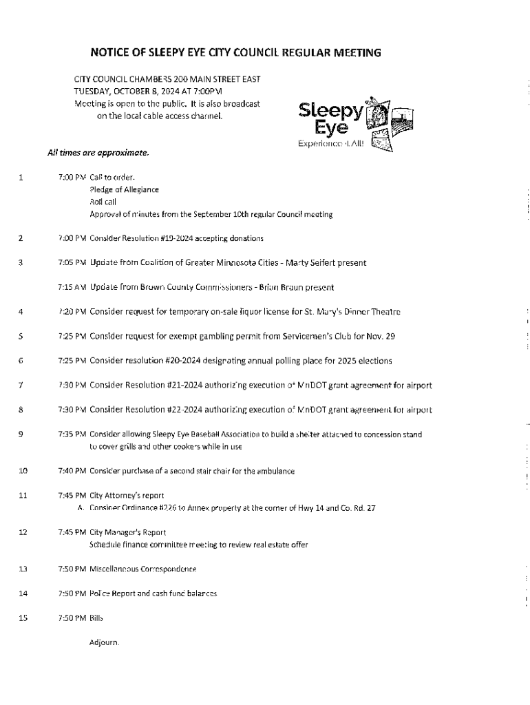 Get the free Notice of Sleepy Eye City Council Regular Meeting