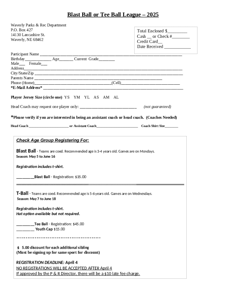 The individuals who need to fill out the blast ball form include not only players but also their parents or guardians. This becomes particularly important when dealing with young children, as parents often need to provide medical information, consent for participation, and emergency contact details. Regular updates on the form may be necessary, especially when teams compose new members each season. Typically, the form is required preseason, but it may also need to be filled out when older children transition from one level of blast ball to another.