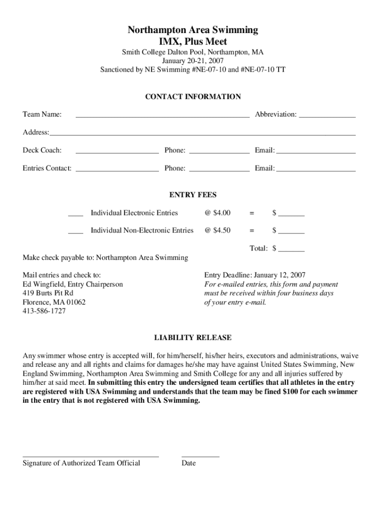 Get the free Northampton Area Swimming Imx Plus Meet