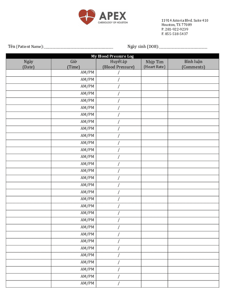 Obtenir le gratuit Blood Pressure Log - Document Template