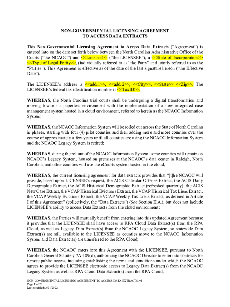 Get the free Non-governmental Licensing Agreement to Access Data Extracts