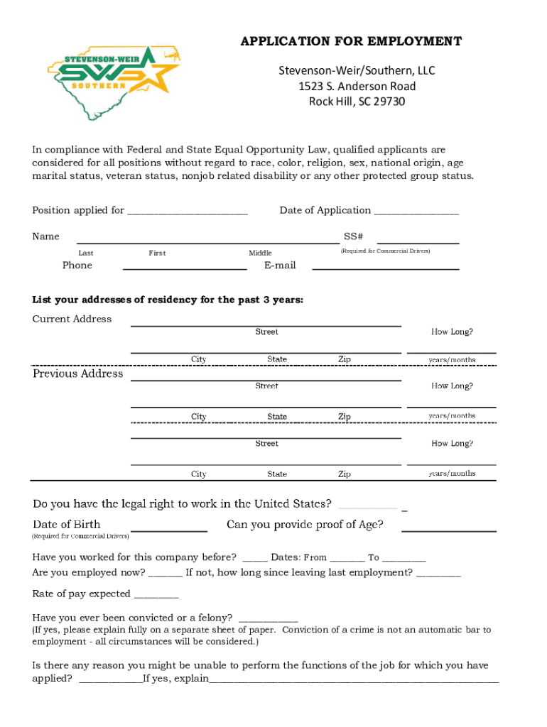 An effective application for employment form comprises several critical sections. Understanding these components is essential for filling out the form correctly and maximizing your chances of being hired.